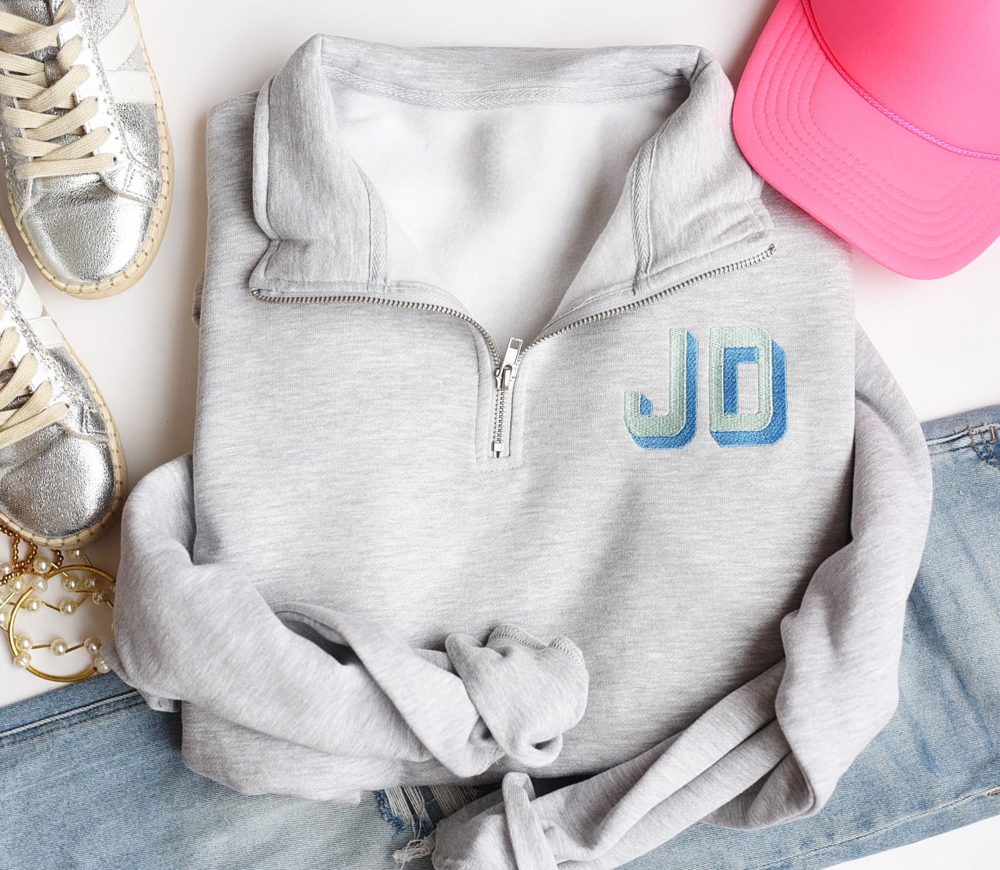 Personalized Quarter Zip Shadow Block Font Initials